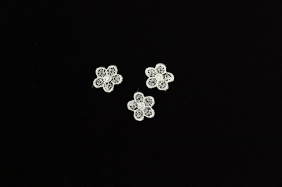 Mini kwiatuszki, aplikacje gipiurowe w kolorze śmietankowym.