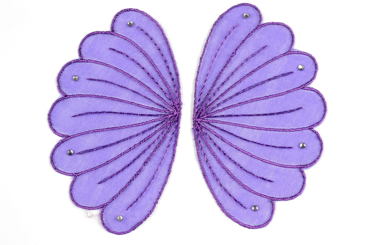 Ciemnofioletowe aplikacje haftowane na gęstym tiulu.