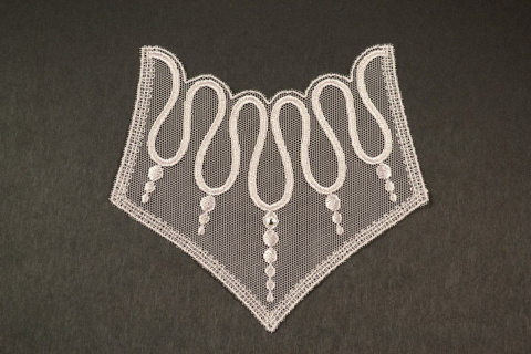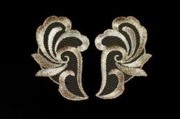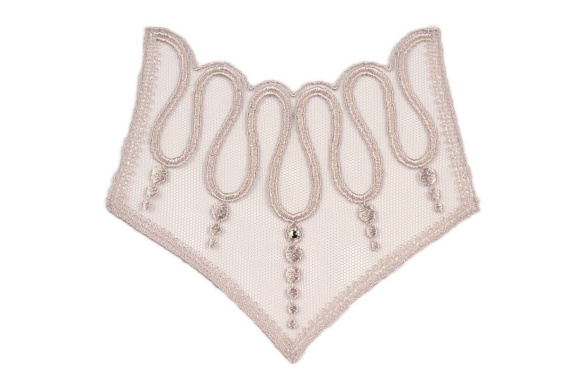 Jasnobeżowe aplikacje haftowane na tiulu,zdobione kryształkiem w stylu Svarowski.