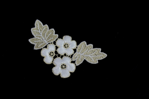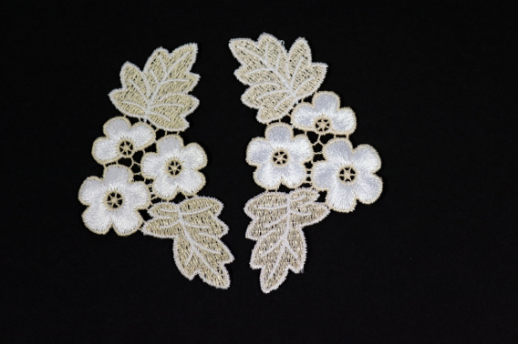 Beżowo białe aplikacje, naszywki gipiurowe.