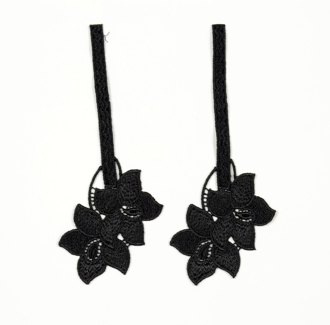 Czarne naszywki kwiaty, kwiaty do naszycia 2szt.