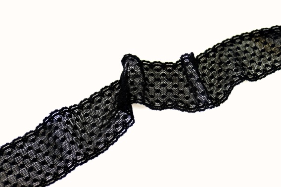 Narrow elastic lace in a classic black color. Made of a soft, pleasant-to-touch material that adapts perfectly to body shapes.