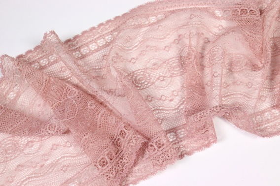 Elegant and delicate stretch lace in a beautiful blush pink color. Made from high-quality, soft, and flexible material, this lace is perfect for a variety of sewing and decorative projects. With a generous width of 17.5 cm, it's ideal for finishing garments, lingerie, accessories, and even home decor.