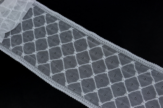 Produkt bezpieczny w użytkowaniu. Koronki przeznaczone do szycia i dekoracji tekstyliów. Nieodpowiednie dla dzieci poniżej 3. roku życia – ryzyko zaplątania.