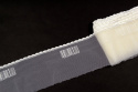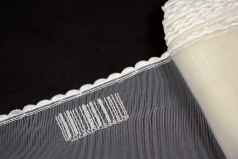Kremowy haft na elastycznym tiulu.Wzór w kod kreskowy.