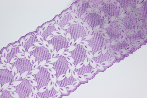 Elastyczny Haft w Kolorze Fioletowym na Białym Tiulu