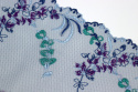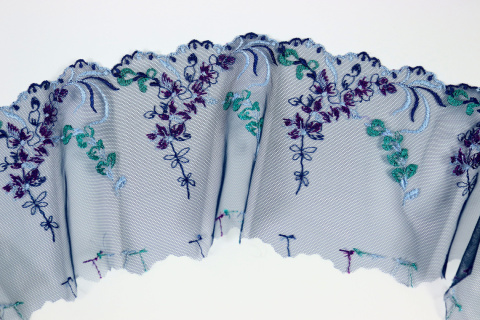 Stabilność tego haftowanego tiulu sprawia, że jest on łatwy do obróbki oraz utrzymania w odpowiedniej formie. Możesz go swobodnie przyszywać lub przyklejać do różnych powierzchni bez obaw o jego deformację czy uszkodzenie. Granatowy kolor tiulu doskonale komponuje się z wzorem haftu w butelkowej zieleni i purpurze. Dzięki temu możesz stworzyć unikalne dekoracje takie jak serwetki, poduszki czy firanki, które będą zachwycały swoim pięknem.