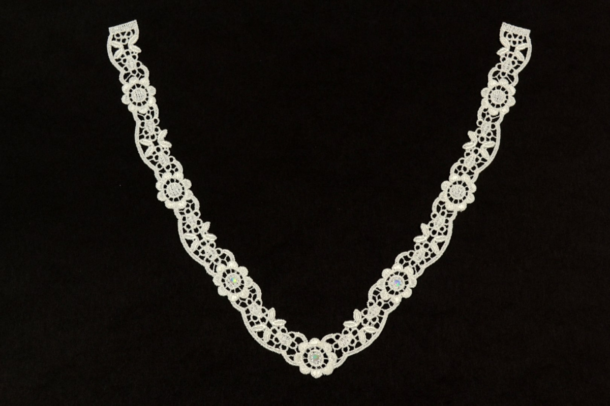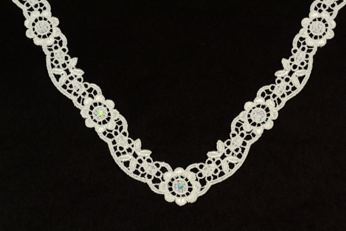 Produkt bezpieczny w użytkowaniu. Koronki przeznaczone do szycia i dekoracji tekstyliów. Nieodpowiednie dla dzieci poniżej 3. roku życia – ryzyko zaplątania.
