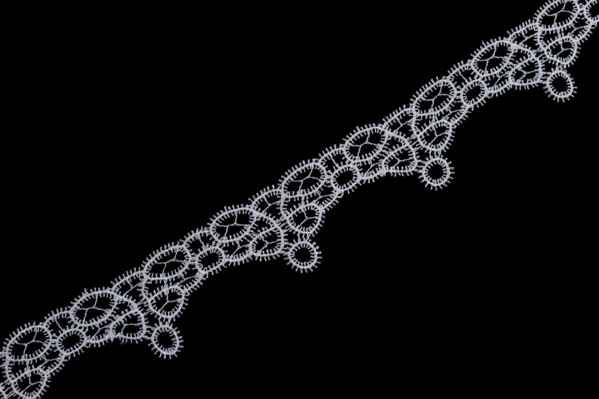 Produkt bezpieczny w użytkowaniu. Koronki przeznaczone do szycia i dekoracji tekstyliów. Nieodpowiednie dla dzieci poniżej 3. roku życia – ryzyko zaplątania.