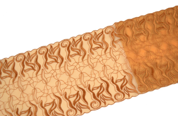 Haft w kolorze herbacianym, stabilna koronka do szycia 0,5mb