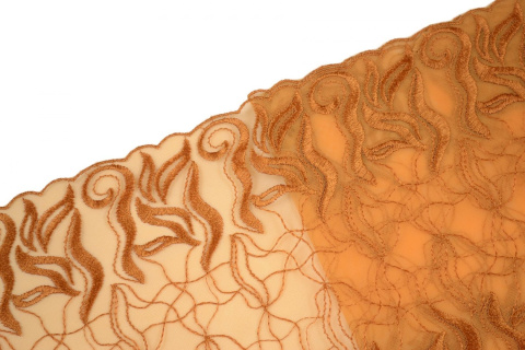Haft w kolorze herbacianym na stabilnym tiulu.