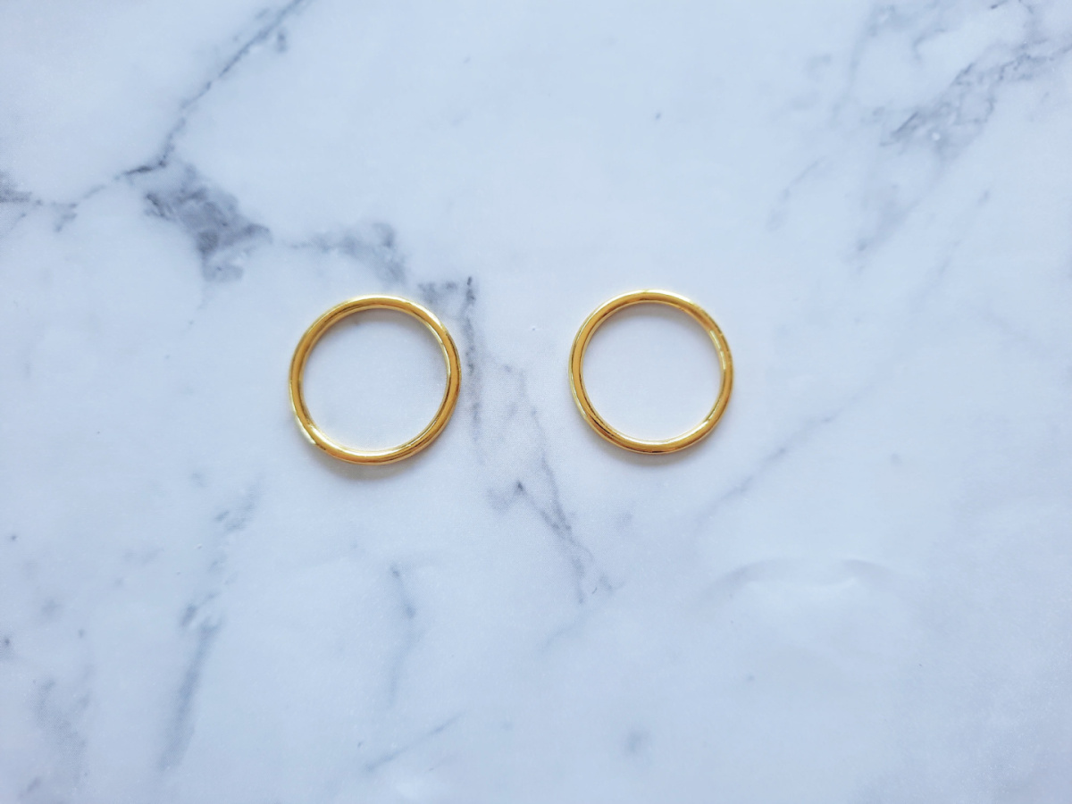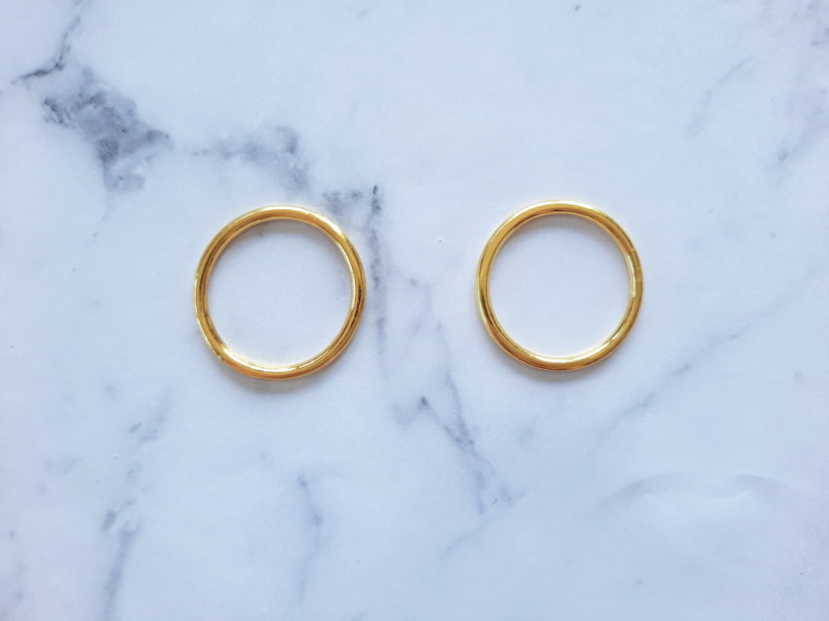 Metalowe kółka do szycia bielizny w kolorze złotym.