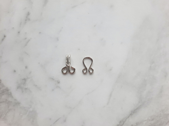 Srebrne metalowe haftki.