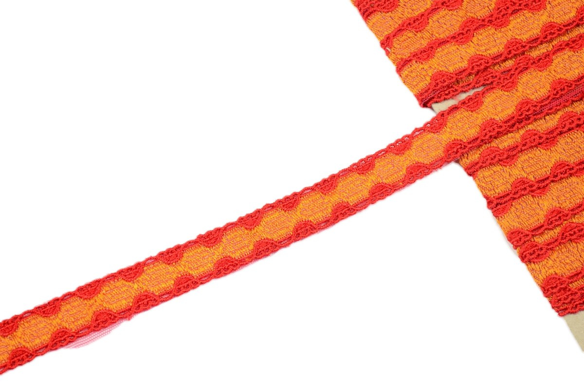 Wąski czerwony haft, tasiemka ozdobna, wstawka 1,2mb