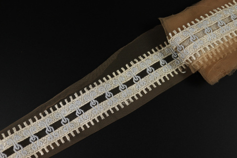 Wąski haft, koronka na tiulu nude, koron kowe wykończenia 0,5mb