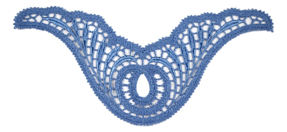 Niebieska aplikacja gipiurowa z domieszką bawełnianej nici.
