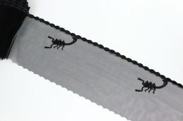 Czarny, szeroki haft na tiulu, czarna elastyczna koronka, szycie 0,5mb