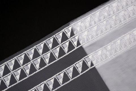 Śnieżnobiały haft na stabilnym tiulu.