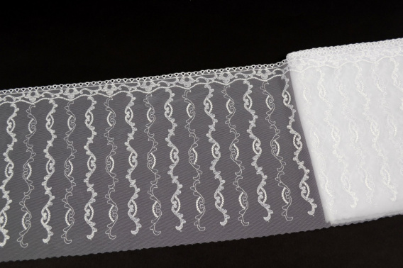 Stabilny haft czysta biel, koronka na tiulu 0,5mb