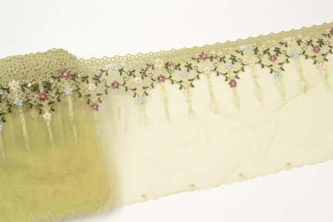 Haft w drobne kolorowe kwiatuszki na stabilnym tiulu (tiul dość sztywny).