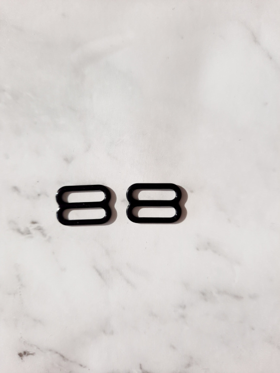 Metalowy regulator do szycia bielizny w kolorze czarnym.