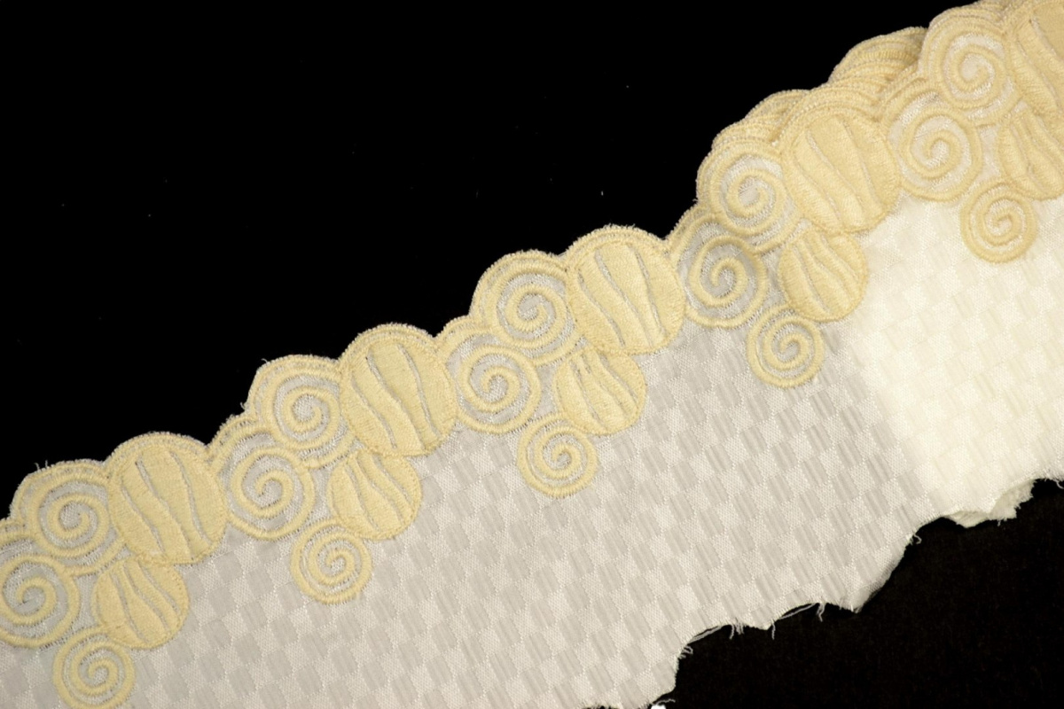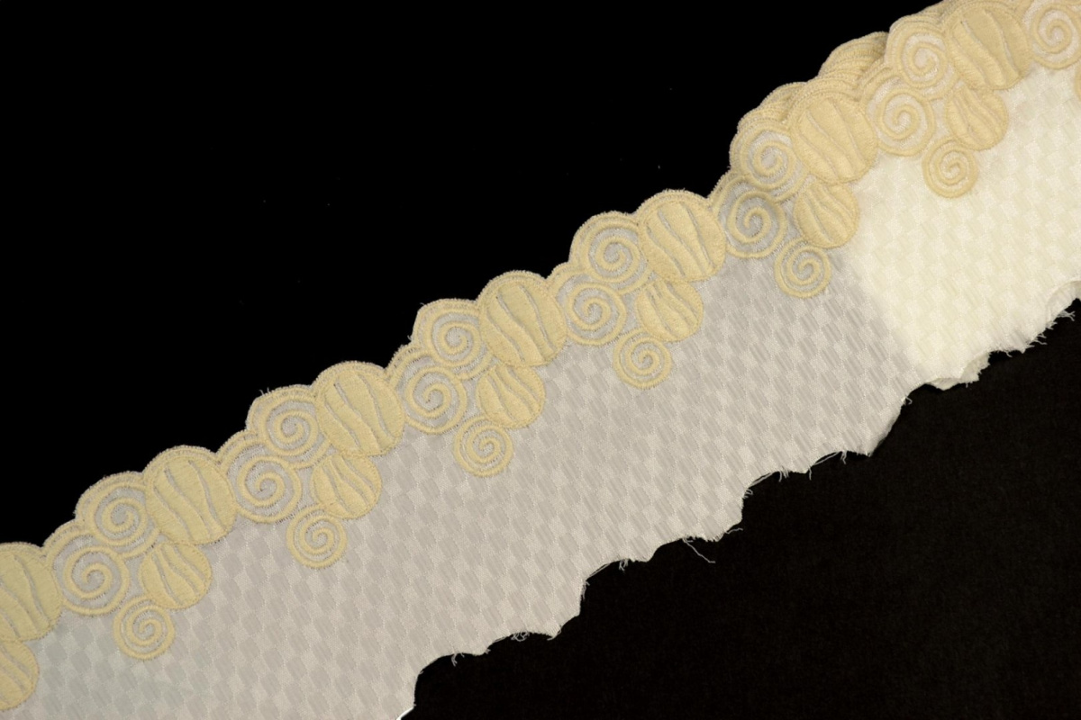 Haft w kolorze jasnego beżu na elastycznym,bawełnianym podkładzie.
