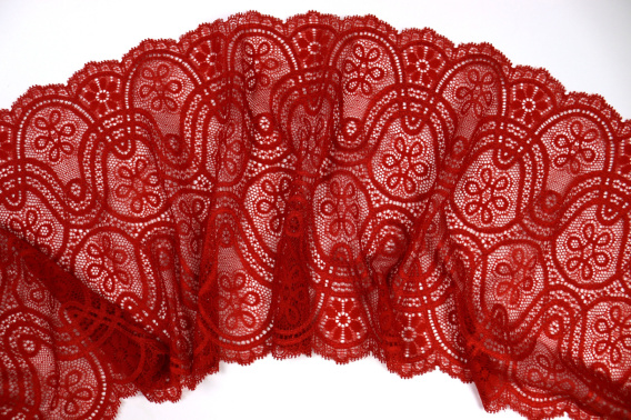 Szeroka czerwona koronka elastyczna.