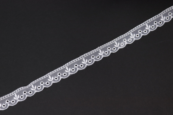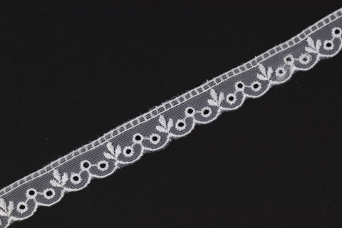 • Wąski śnieżnobiały haft na tiulu 1mb