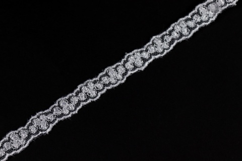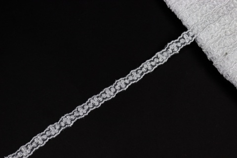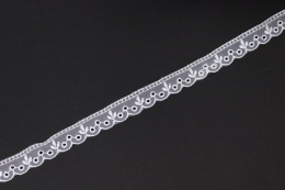 Biała wąska tasiemka, tasiemka ozdobna, haft na tiulu, miękka koronka 0,5mb