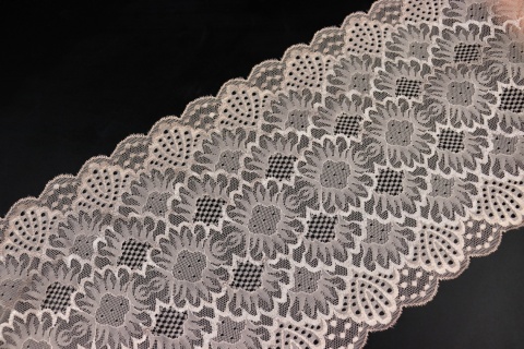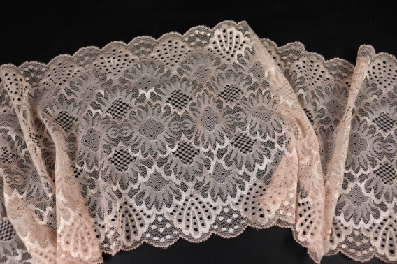 Wysokiej jakości elastyczna koronka w kolorze brzoskwiniowym o szerokości 20 cm to doskonały wybór dla pasjonatek szycia i twórczyń handmade. Świetnie sprawdzi się jako materiał do szycia bielizny, topów, sukienek, piżam, dodatków oraz ozdób DIY.