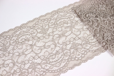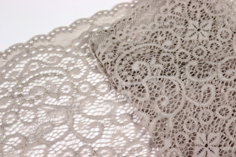Soft, wide stretch lace in a beautiful sand beige color : perfect for lingerie, garments, and elegant DIY projects. Sold by 0.5 meter.