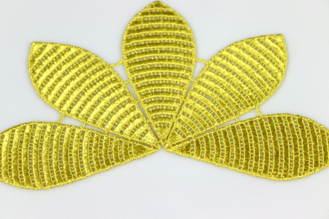 Delikatna żółta aplikacja gipiurowa idealna do szycia stringów, bielizny damskiej czy ozdobnych wstawek.