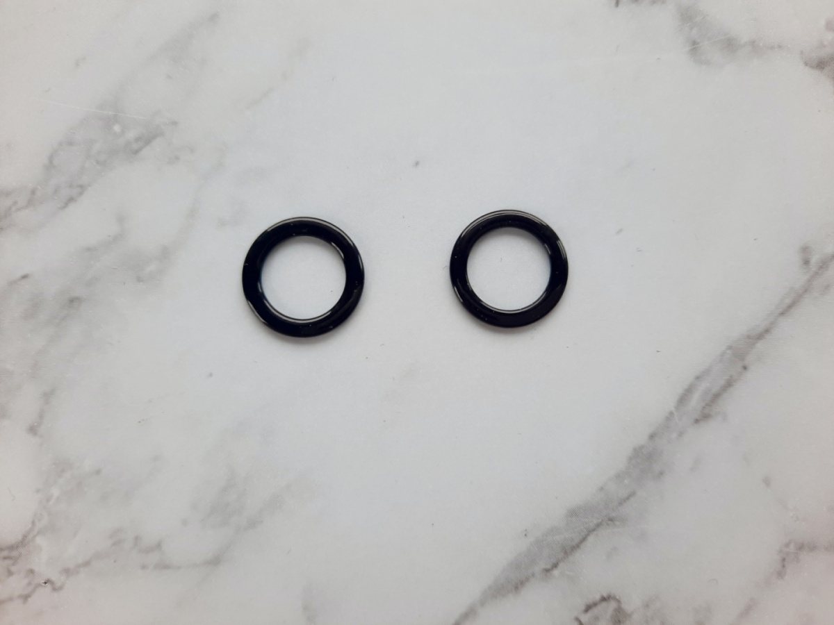 Metalowe kółka do szycia bielizny w kolorze czarnym.